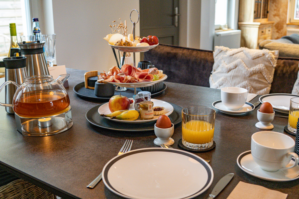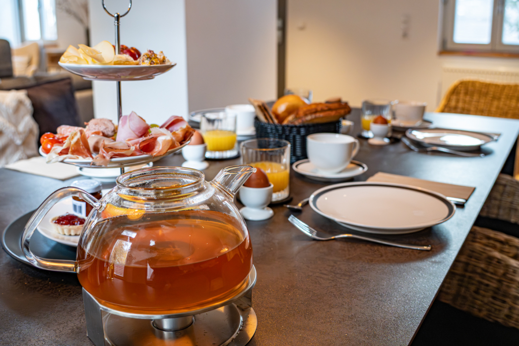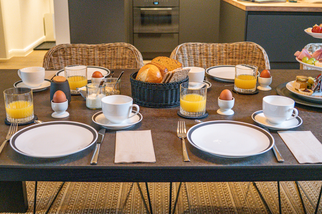 Starten Sie entspannt in den Tag: Ein reichhaltiges Frühstück im Appartement ist auf Anfrage und gegen Aufpreis erhältlich. Ob frische Brötchen, regionale Spezialitäten oder aromatischer Kaffee – wir sorgen gern für einen genussvollen Morgen.